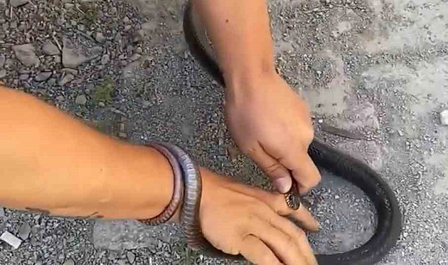 Hatay'ın Payas ilçesinde "Yılancı Kemal" olarak bilinen Kemal Başer, evine giren yaklaşık 1 metrelik yılanı yakalamaya çalışırken parmağından ısırıldı. Yılan tarafından ısırılmasına rağmen Başer'in serinkanlı tavrı dikkat çekerken, çevredeki vatandaşların yaşadığı korku anları kameraya yansıdı.