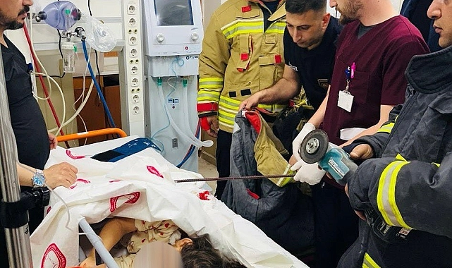 Hatay'da dengesini kaybederek yüksekten demirin üzerine düşen bir çocuğun bel kısmına saplanan demir parçası, hastanede itfaiye ekiplerinin yardımıyla kesilerek çıkarıldı.