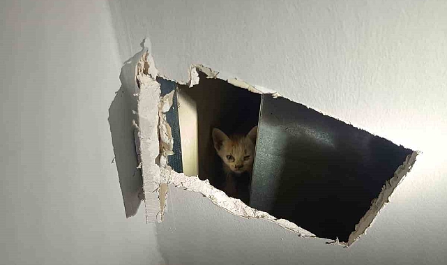 Ersoylu Mahallesi'nde bulunan Yeni Buğday Pazarı idari binasının havalandırma boşluğuna iki yavru kedi düştü. İhbar üzerine olay yerine gelen itfaiye ekipleri, titiz bir çalışma sonucu kedilere ulaştı. Havalandırma boşluğunda mahsur kalan yavru kediler, zarar görmeden güvenli bir şekilde çıkarıldı.