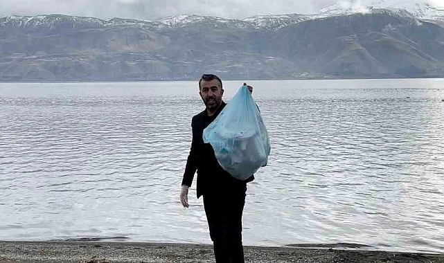 Elazığ'da bir vatandaş, tatilcilerin yaz aylarında sıkça uğradığı Hazar Gölü çevresindeki çöpleri elleriyle tek tek topladı.