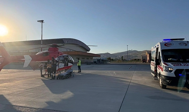 Van'ın Bahçesaray Devlet Hastanesinde tedavi görmekte olan doğum hastası kadın için helikopter ambulans havalandı.