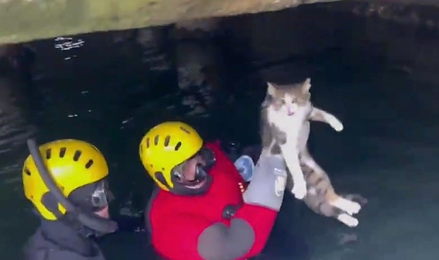 İtfaiye erleri, iskelenin altına girerek kediyi bulunduğu yerden çıkarmak için büyük çaba gösterdi. Denizden iskelenin altına ulaşan ekipler, kediyi kısa sürede kurtarmayı başardı. Kurtarılan kedinin sağlık durumunun iyi olduğu görüldü.