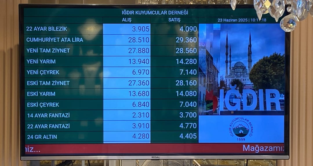 Iğdır Kuyumcular Derneği - 23 Haziran 2025 Pazartesi Altın Fiyatları