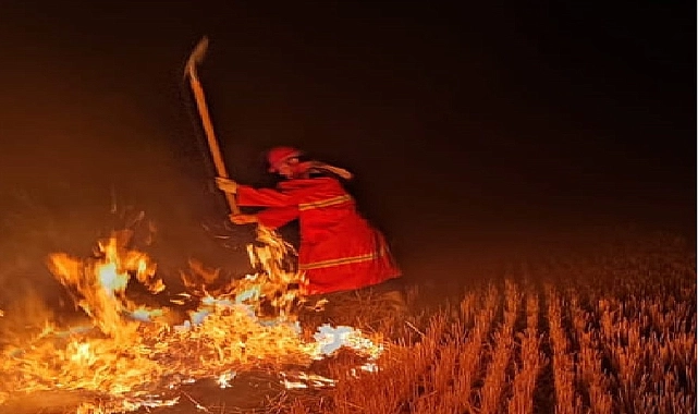 Iğdır’ın Alikamerli mahallesinde yaşanan anız yangını paniğe neden oldu.