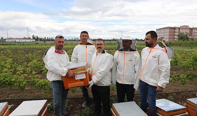 Vali Turan, arıcı kıyafetlerini giyerek arı kovanlarını açıp bal peteklerini kontrol etti.