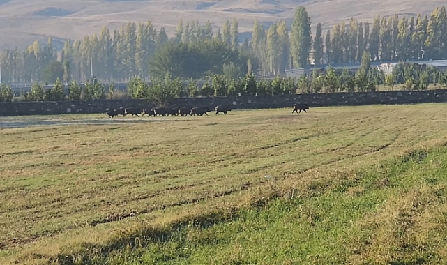 Iğdır’ın Halfeli Beldesinde görüntülenen domuz sürüsü vatandaşları tedirgin etti.
