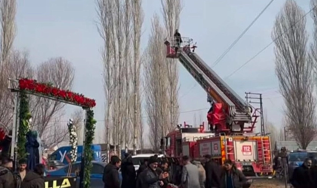 Düğün sahibi, itfaiye aracına çıkarak kendisi drone'unu kurtardı. Bu ilginç anlar, bir vatandaş tarafından cep telefonu kamerasıyla görüntülendi. Yaşanan bu olay, hem sosyal medyada hem de bölgede geniş yankı buldu.