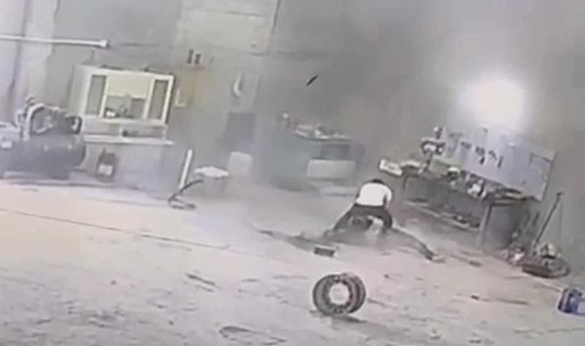 Olay anı güvenlik kameralarına da yansıdı. Görüntülerde, Faruk Aycil’in lastiğin başında durduğu ve bir anda patlamayla birlikte yere savrulduğu anlar açıkça görülüyor.