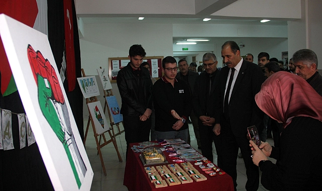 Okulun Değerler Kulübü öğrencileri tarafından büyük bir özveriyle hazırlanan sergide, Filistin halkının yaşadığı zorluklar, resimler, maketler ve bilgilendirme panolarıyla gözler önüne serildi.