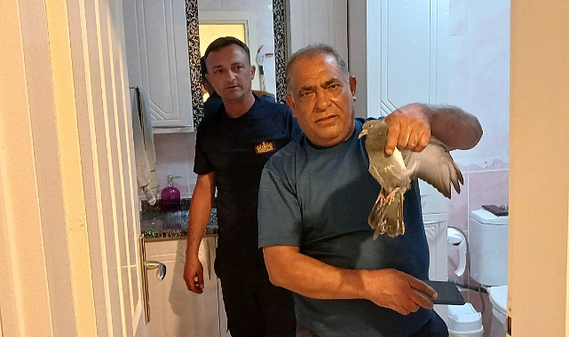 Güvercini kurtarma anlarına tanık olan mahalle sakinleri ve vatandaşlar itfaiye ekibine teşekkür etti.
