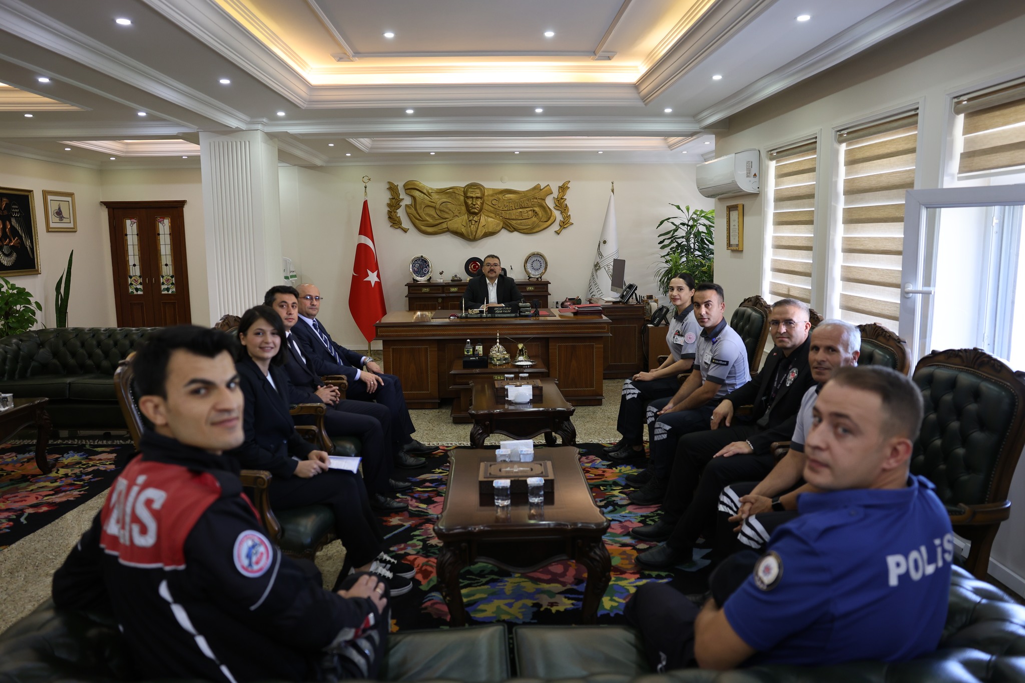 Iğdır Valisi Ercan Turan, 26-30 Haziran Özel Güvenlik Haftası dolayısıyla İl Emniyet Müdür Yardımcısı Murat Çakır, İl Emniyet Müdürlüğü personeli ve özel güvenlik görevlilerini makamında ağırladı.