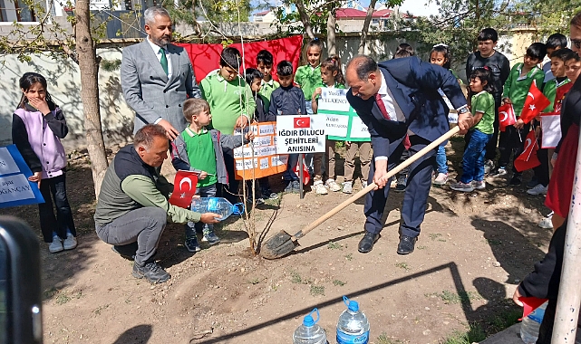 Iğdır'da, Polis Haftası etkinlikleri kapsamında anlamlı bir tören düzenlendi. Iğdır Dilucu Şehitleri'nin anısına, İl Milli Eğitim Müdürü Aziz Gün ve Orman İşletme Müdürü Taner Tazegün, Fatih Sultan Mehmet Anaokulu ve İlkokulu bahçesinde fidan dikimi gerçekleştirdi.