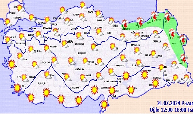 21 TEMMUZ 2024 PAZAR GÜNÜ TÜRKİYE GENELİ METEOROLOJİK HAVA TAHMİN RAPORU