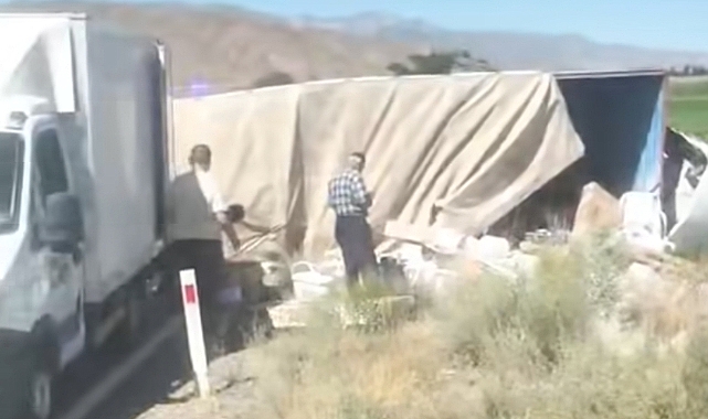 Iğdır'ın Tuzluca ilçesi Ağabey köyü yakınlarında meydana gelen kazada, inşaat malzemesi yüklü bir TIR devrilerek yolu ulaşıma kapattı. Kazada hafif yaralanan sürücüye müdahale edilirken, karayolu ekiplerin çalışmasıyla kontrollü bir şekilde yeniden açıldı.