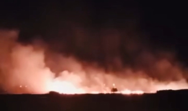 Iğdır'da akşam saatlerinde başlayan anız yangını paniğe neden oldu.