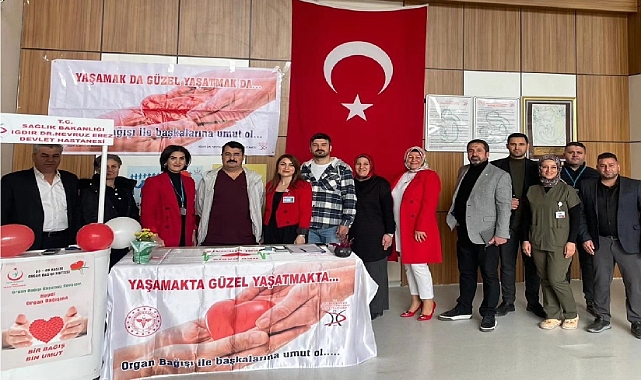 Iğdır Devlet Hastanesinde kurulan stantta hastaneye başvuran hasta ve hasta yakınları ile hastane çalışanlarına Organ bağışının önemini anlatmak, organ bağışı sayısını arttırmak ve halkın organ bağış bilincini geliştirmek ve farkındalık yaratmak amacıyla broşürler dağıtıldı.
