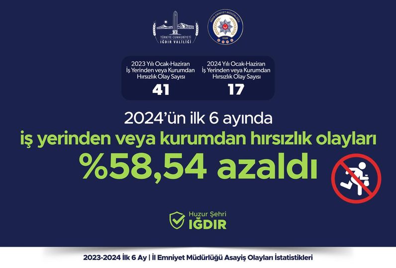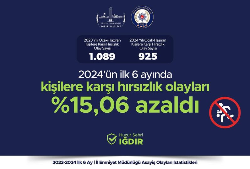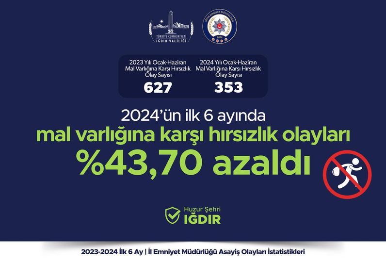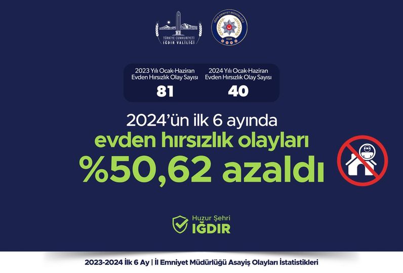 Iğdır’da açıklanan suç oranları geçen yılın ilk altı ayına kıyasla gözle görülür düşüş yaşandı.