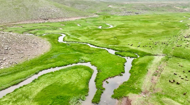 Yemyeşil doğası ve yüksek dağlarında otlayan hayvanlar ve menderesler dron havadan ile görüntülendi. İlçenin doğal güzellikleri arasında yer alan mendereslerin muhteşem görüntüleri, görenleri kendine hayran bırakıyor.