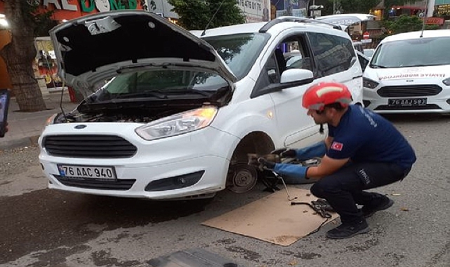 Başka bir olayda ise Iğdır Zübeyde Hanım Bulvarında park halindeki aracın tekerleğinin arkasına saklanmış bir kedi fark edildi.