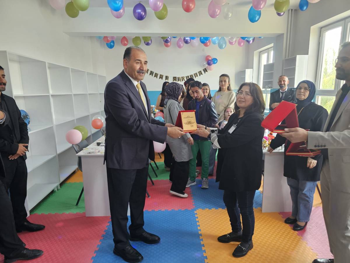 Törene katılan İl Milli Eğitim Müdürü Aziz Gün, gönüllülerden Sevilay Akbaş, Hülya Erdoğan ve Zeliha Sönmez’e katkılarından dolayı plaket takdim etti. Ayrıca gönüllüler topluluğu da desteklerinden ötürü İl Milli Eğitim Müdürü Aziz Gün, Özel Eğitim ve Rehberlik Hizmetleri Şube Müdürü Cevdet Parlar, okul müdürü Cebrail Çiftçi ile öğretmenler Dilan Arga ve Murat Taş’a plaket sundu.