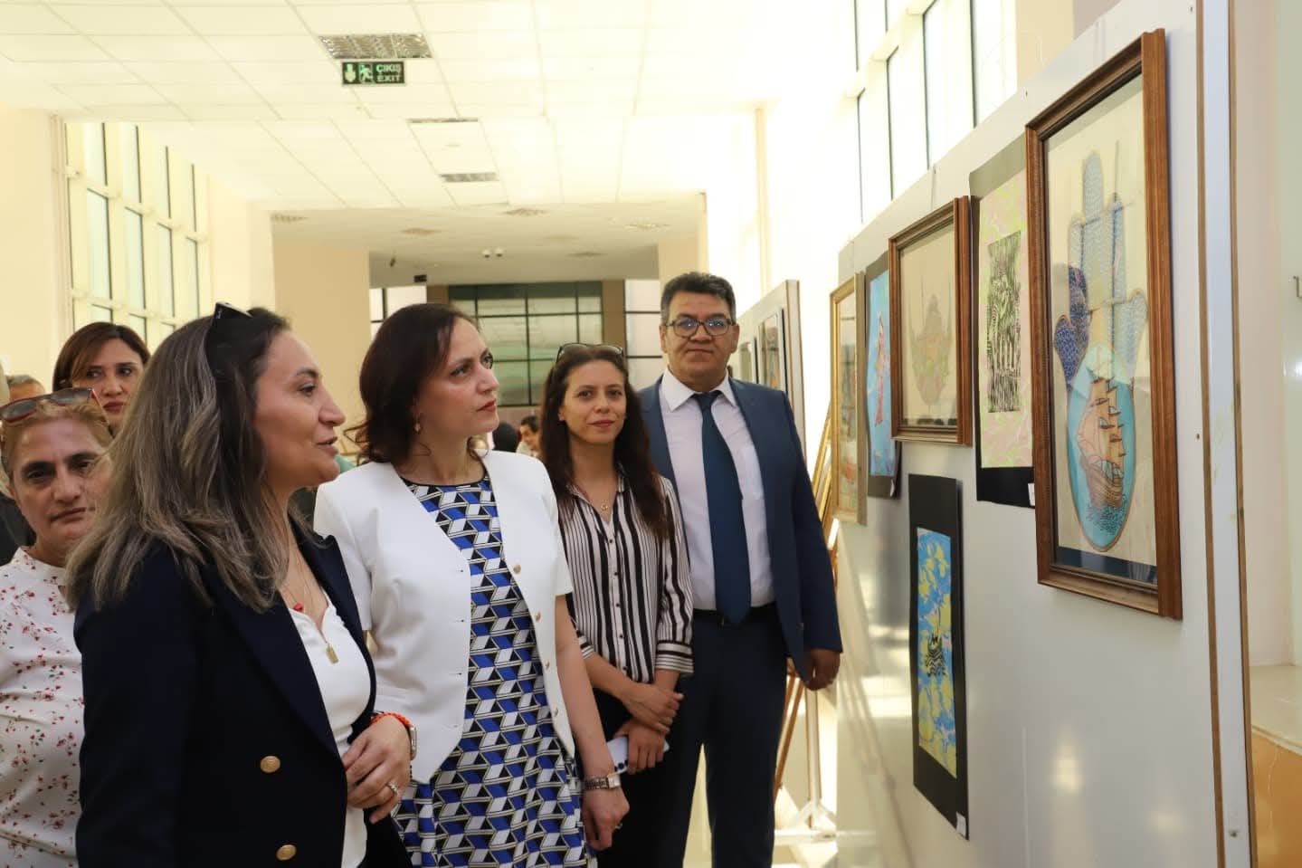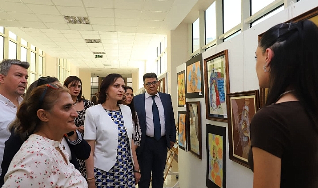Serginin açılışının ardından katılımcılar, eserleri yakından inceleme fırsatı buldu ve öğrencilerden çalışmaları hakkında bilgi aldı.