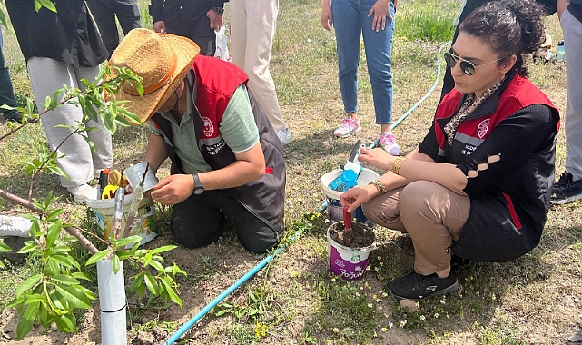 Iğdır Tarım ve Ormancılık Müdürlüğü teknik personelince Iğdır Üniversitesi Ziraat Fakültesi öğrencilerine aşısız ağaçlara uygulamalı aşı eğitimi verildi.