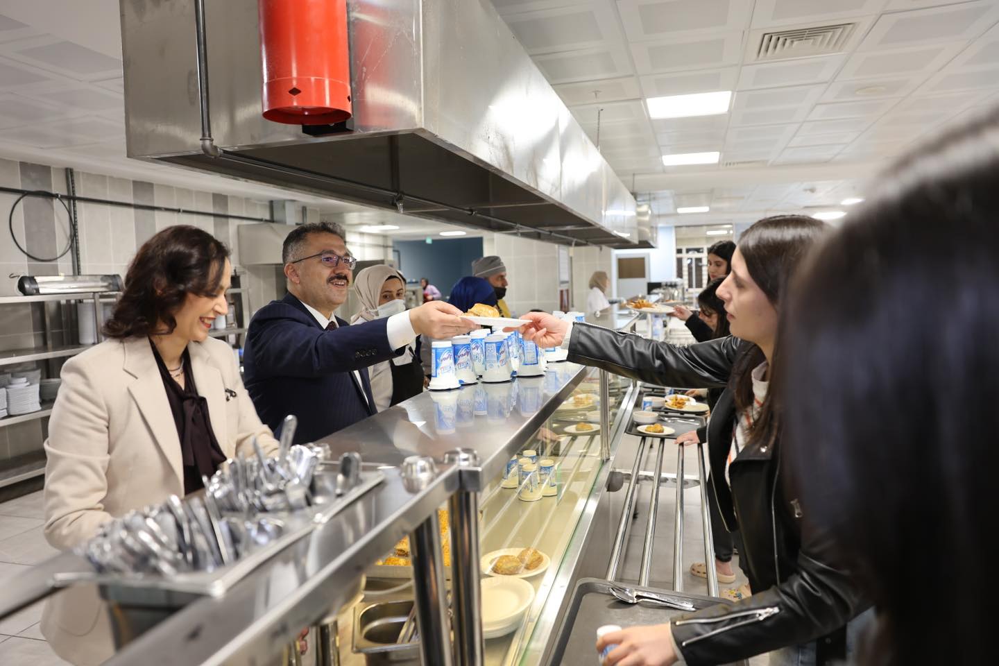 Iğdır Üniversitesi'nde yer alan yurtta kalan öğrencilerle bir araya gelen Vali Turan, gençlerin geleceği için başarılar diledi.