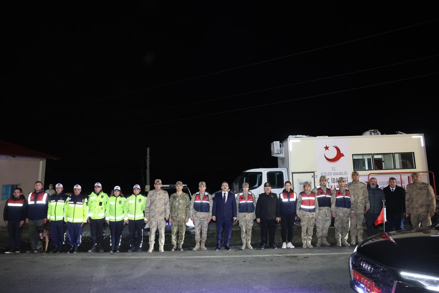 Vali Ercan Turan, yılın son gününde Suveren Jandarma Uygulama Noktası ve burada bulunan Mobil Göç Noktası’nı ziyaret ederek, alınan yılbaşı tedbirlerine ilişkin denetimlerde bulundu.