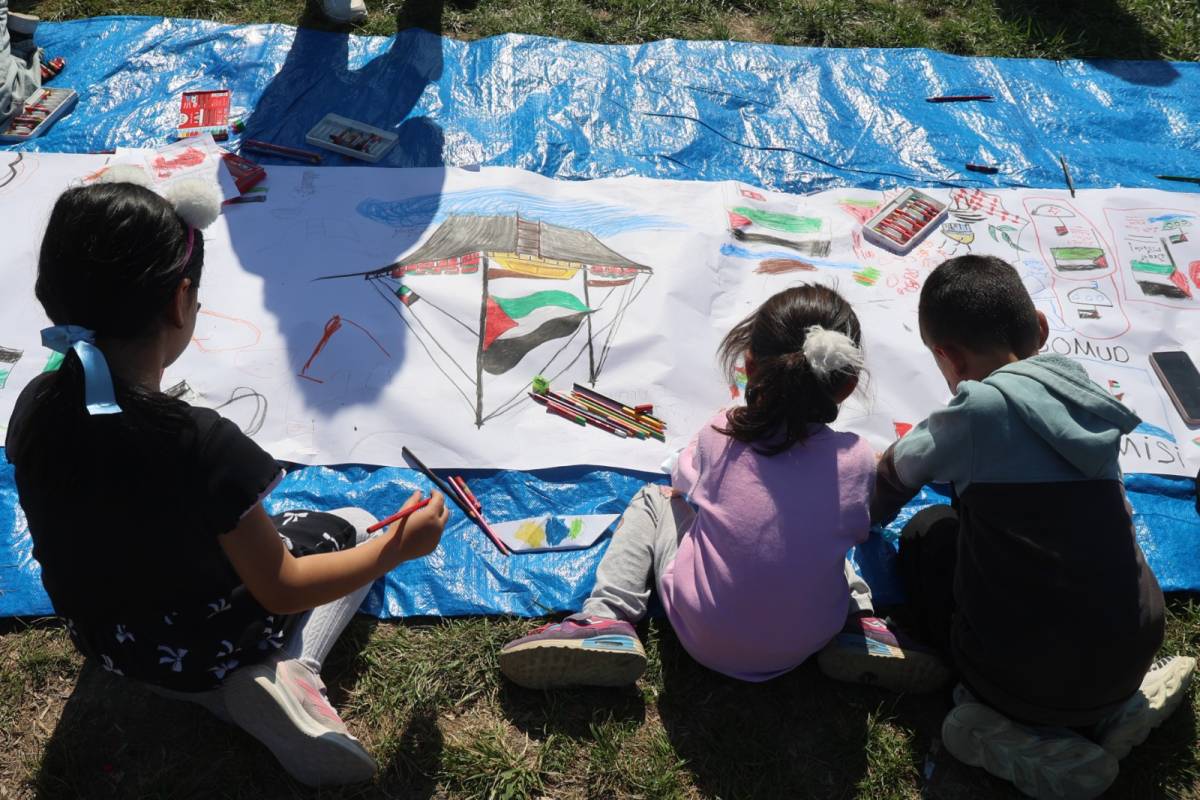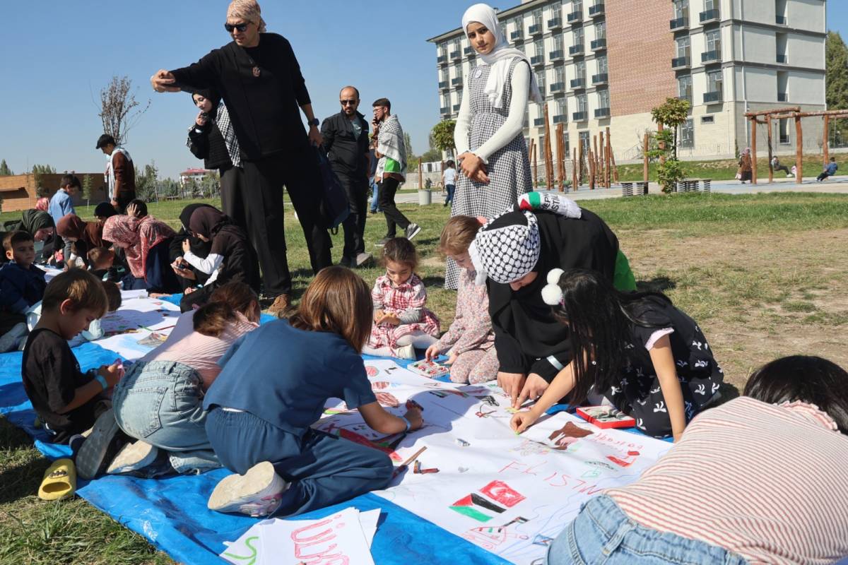 Çocuklar, Filistin’de yaşananları anlatan resimler çizdi, pankartlar hazırladı ve boyama çalışmalarıyla duyarlılıklarını ifade etti.