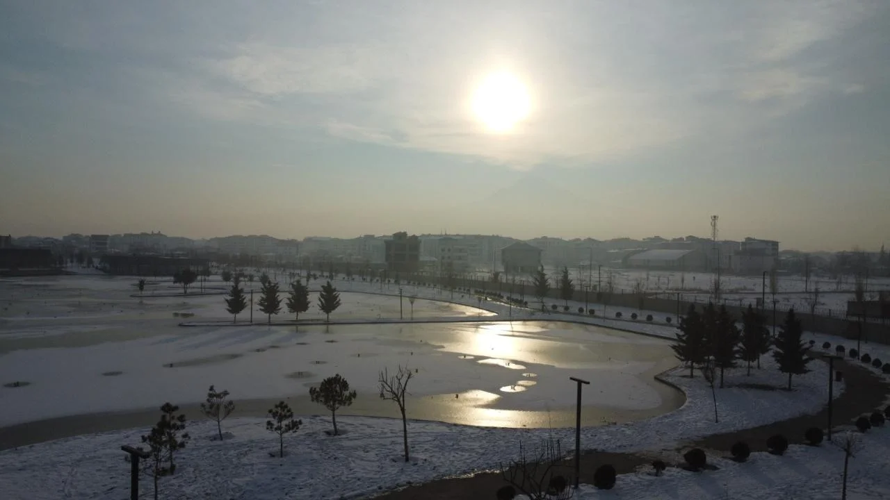 Soğuk hava nedeniyle kent genelinde dere ve küçük göletlerin de buzla kaplandığı görülürken, Millet Bahçesi’ndeki buz tutan gölün görüntüleri drone ile havadan görüntülendi.