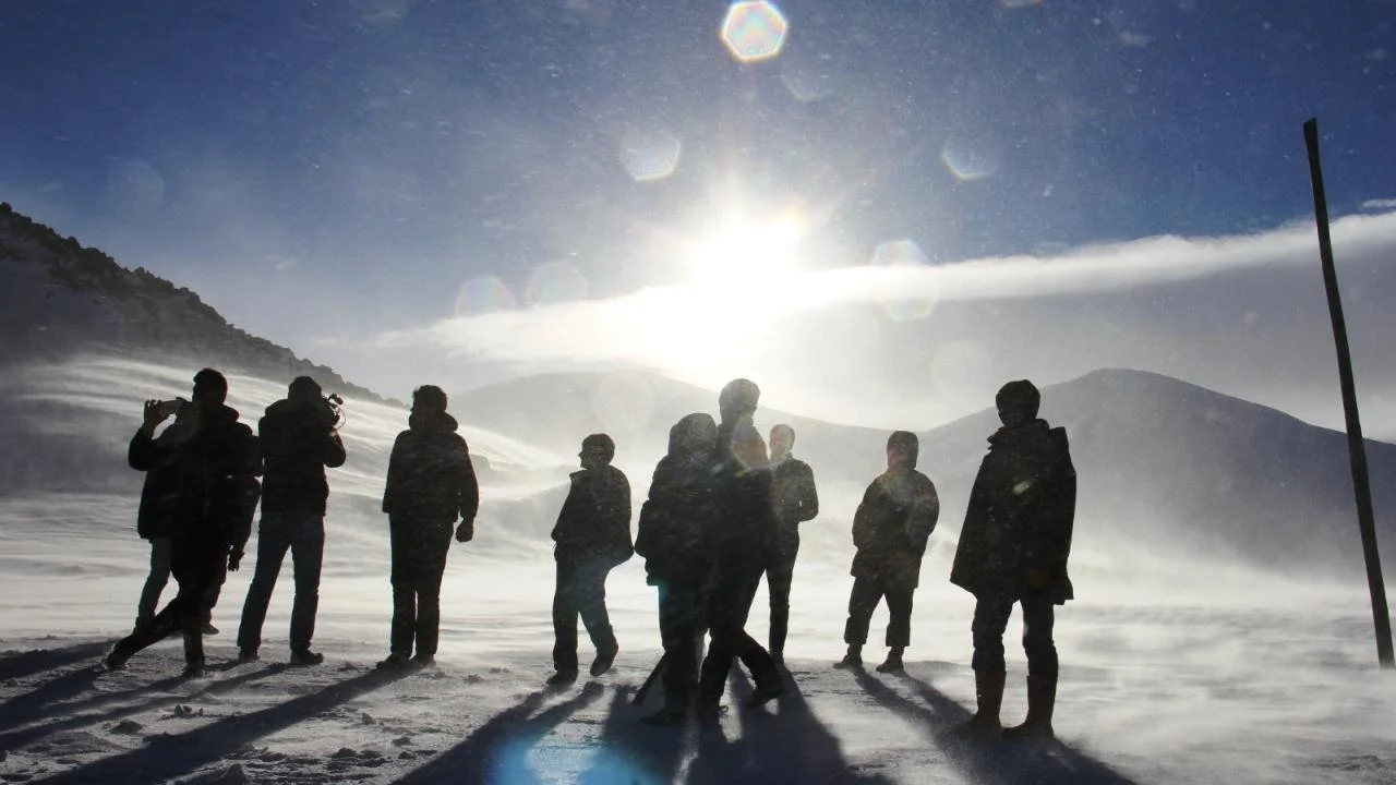 Sert rüzgâr ve soğuk havaya aldırış etmeyen köylü çocuklar, karla kaplanan yamaçlarda kayarak ve oyunlar oynayarak beyaz örtünün keyfini çıkardı.