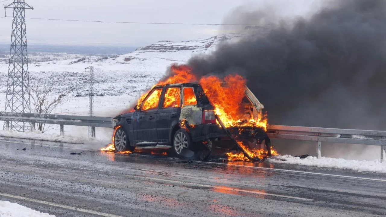 Alınan bilgilere göre, Iğdır Suveren yolu üzerinde seyir halinde bulunan 76 ABJ 352 plakalı araç, henüz bilinmeyen bir nedenle alev aldı.