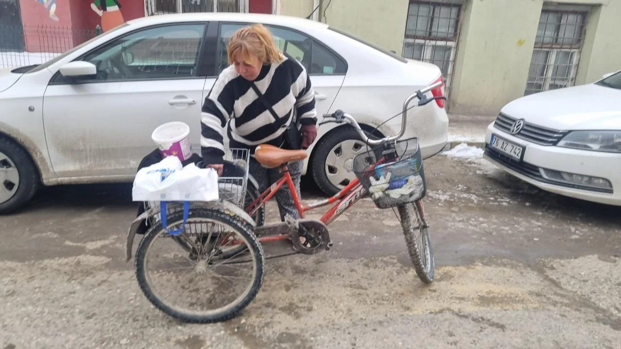 Üç tekerli bisikletiyle mahalle mahalle, sokak sokak gezen Atabay, kentin dört bir yanındaki kedi ve köpekleri kendi imkanlarıyla besliyor.