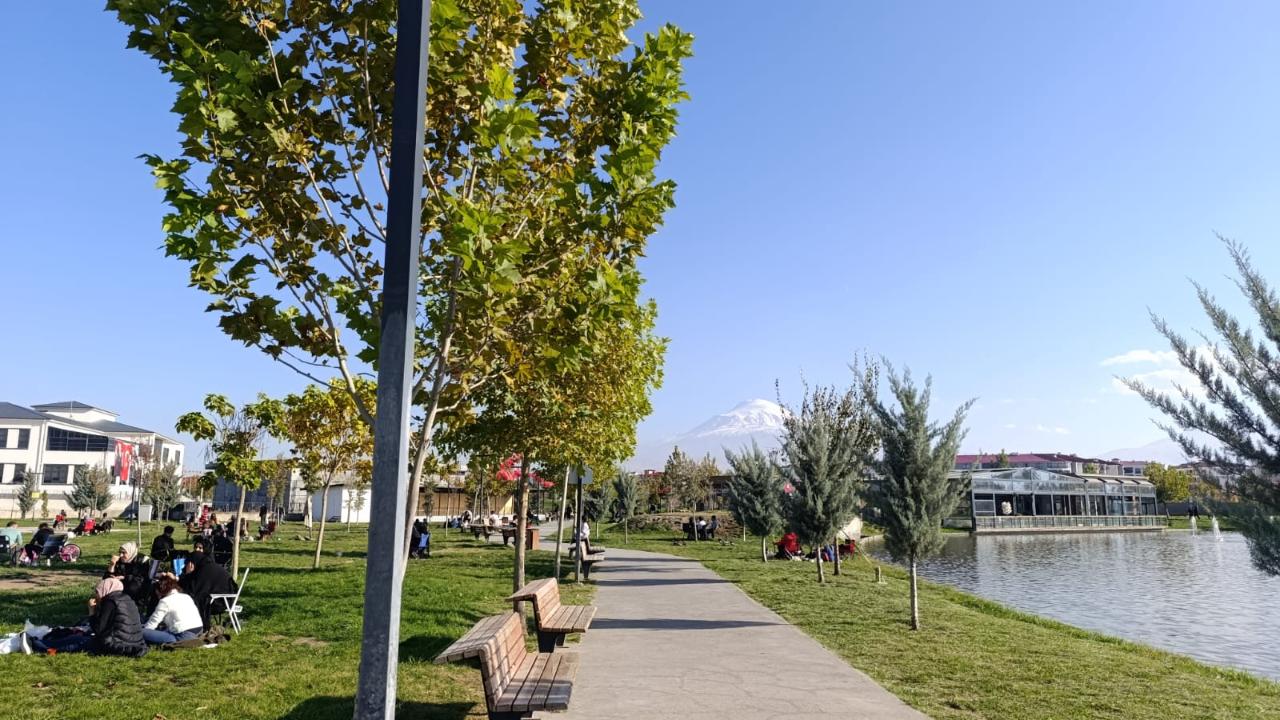 Iğdır’da Kasım ayının ortasına gelinmesine rağmen güneşli havalar yüzleri güldürüyor. Son yılların en önemli yatırımlarından biri olan Iğdır Millet Bahçesi, güzel havayı değerlendirmek isteyen vatandaşların hafta sonu en çok tercih ettiği yerlerden biri haline geldi.