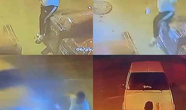 O anlar ise bir iş yerinin güvenlik kamerasına yansıdı. Görüntülerde otomobilin üzerine geldiğini fark eden Kaymaz'ın son anda kaçması ve aracın koltuğa çarpması yer aldı.
