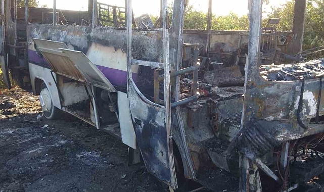 Olay, Yassı Çalı Mahallesi'nde meydana geldi. Tarım işçilerini taşıyan otobüs sürücüsü işçileri bahçeye bıraktıktan sonra aracı park etti. Bir süre sonra otobüsün motor kısmında yangın çıktı. Kısa süre içinde alevlere teslim olan otobüs, tamamen yanarak kullanılmaz hale geldi.