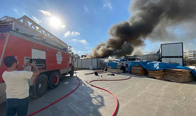 Antalya'nın Serik ilçesinde inşaat işçilerinin kaldığı konteynerlerde yangın çıktı. Gökyüzünü kara dumanların kapladığı yangında işçilerin zamanında dumanları fark ederek konteynerleri terk etmesi faciayı önledi.
