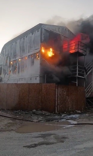 Hatay'da işçilerin kaldığı prefabrik yatakhanede yangın çıktı. Alevler itfaiye ekiplerinin müdahalesiyle söndürülürken, yatakhane kullanılamaz hale geldi.