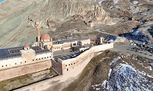 Sarayın detaylı mimarisi, surları, kuleleri ve bahçeleri dron çekimleriyle daha net bir şekilde görülebiliyor. Özellikle gün batımında çekilen görüntüler, sarayın taş duvarlarının ve işlemelerinin altın sarısı bir renge bürünmesini sağlıyor. Bu görüntüler, İshak Paşa Sarayı'nın tarihi ve kültürel değerini bir kez daha gözler önüne seriyor.