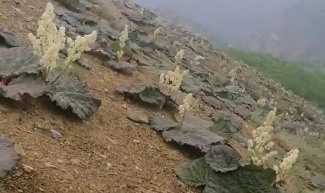 Doğu muzu olarak da isimlendirilen ışkın otu, ilçenin Sarım Çayı mevkisinde boy gösterdi. 40-150 santim boyuna kadar uzanan ışkın, muz gibi soyularak tüketiliyor. Bölgeyi gezen vatandaşlar, boy atan ışkını fotoğrafladı.