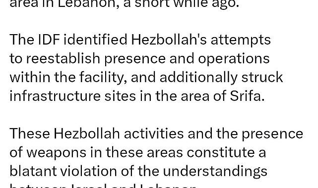 İsrail ordusu, Lübnan'da bulunan Hizbullah'a ait askeri hedeflere ve altyapı tesislerine saldırı düzenlediğini açıkladı.