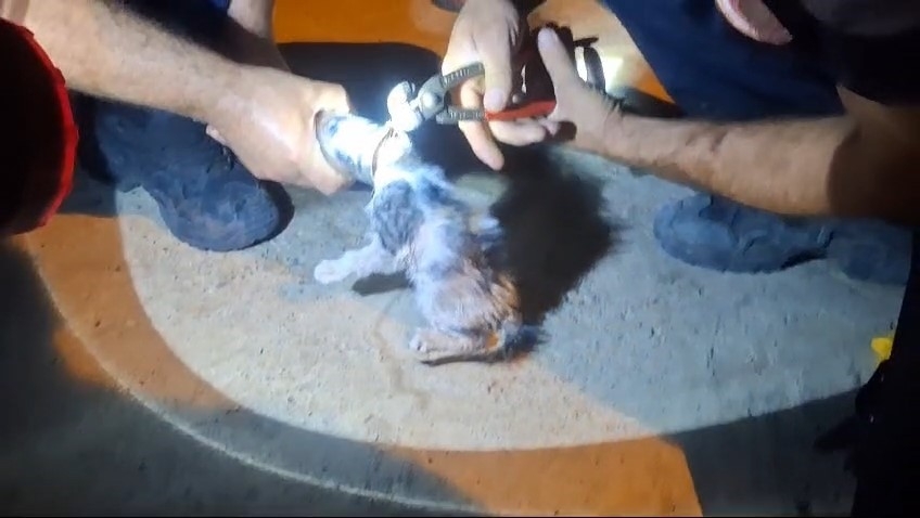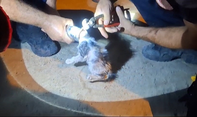 Adıyaman'da kafası boruya sıkışan yavru kediyi itfaiye ekipleri kurtardı.