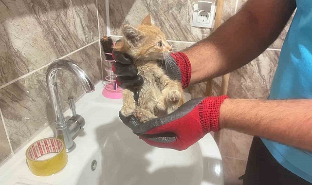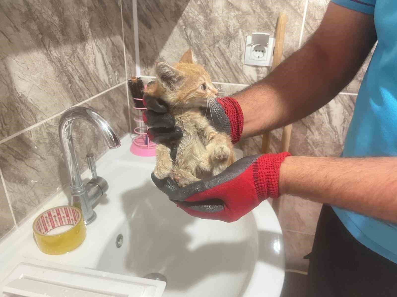Sesler üzerine ev sahibi ve kapıcı kediyi çıkartamayınca durumu 112 Acil Çağrı Merkezine bildirdi. Kedi, ihbar üzerine adrese yönlendirilen itfaiye ekiplerinin çalışması sonucu kurtarıldı.