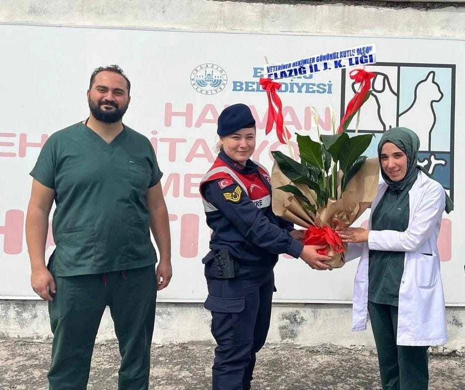 Elazığ'da jandarma ekipleri, Dünya Veteriner Hekimler Günü çerçevesinde veteriner hekimleri unutmadı.