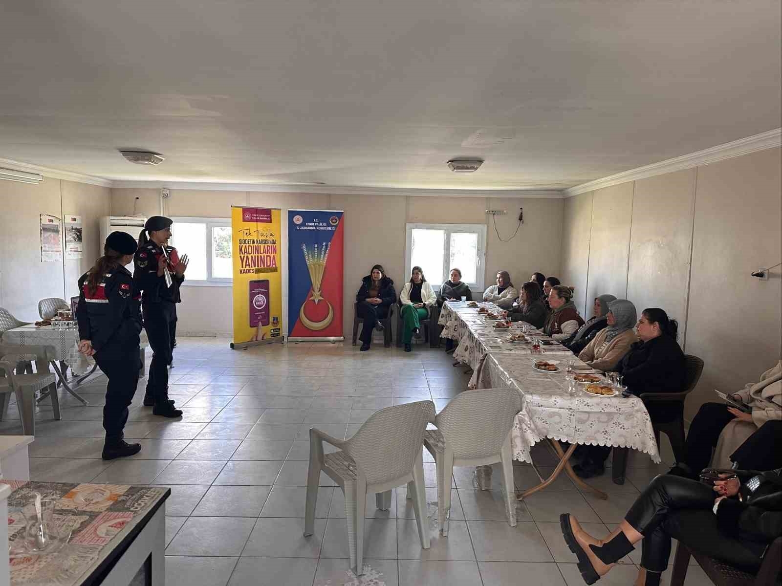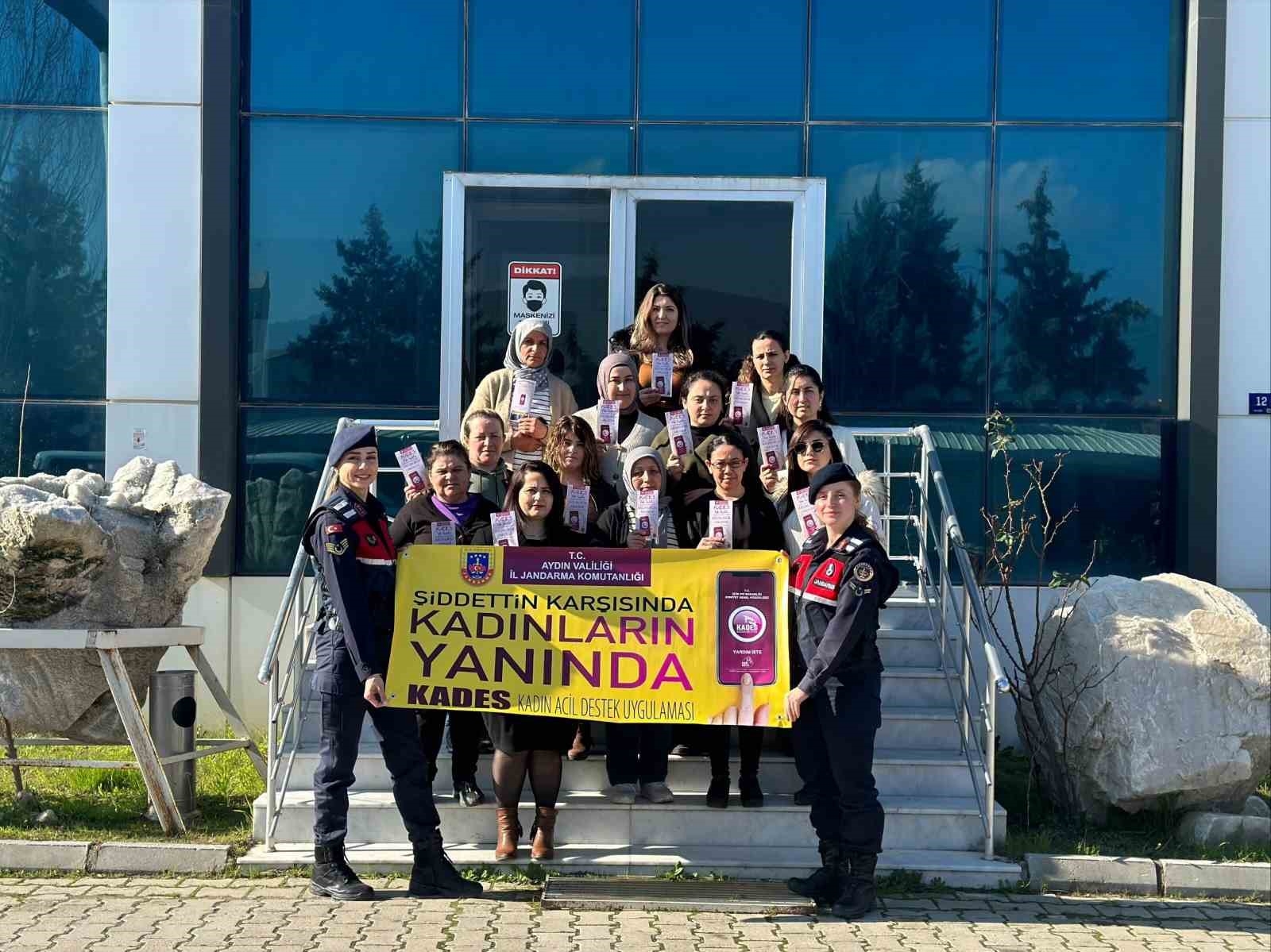 Aydın'ın Çine ilçesinde bir fabrikada çalışan kadınlara jandarma ekiplerince, Kadın Acil Destek Uygulaması (KADES) uygulaması ve kadına şiddet konularında bilgilendirme yapıldı.