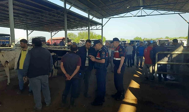 Aydın'ın Çine ilçesinde jandarma ekipleri, Kurban Bayramı öncesinde hayvan pazarında kontroller gerçekleştirirken, vatandaşları da hayvan hırsızlığı ve dolandırıcılara karşı uyarılarda bulundu.
