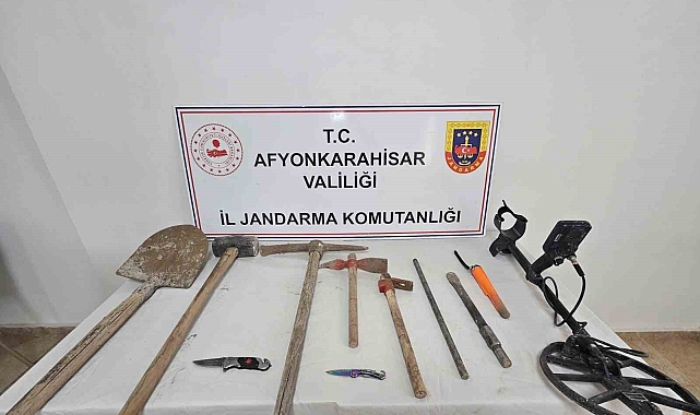 Afyonkarahisar'da izinsiz yaptıkları kazıyla define arayan 3 kişi jandarma tarafından suçüstü yakalandı.
