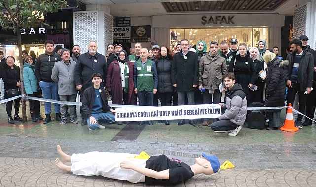 Sakarya'da 9 Şubat Dünya Sigarayı Bırakma Günü kapsamında dikkat çeken bir tatbikat gerçekleştirildi. Kentin işlek noktasına yerleştirilen cansız mankenin sigaraya bağlı kalp krizi geçirdiği senaryo üzerinden sağlık ekipleri müdahale gerçekleştirdi. Tatbikat, vatandaşlar tarafından meraklı gözlerle izlendi.