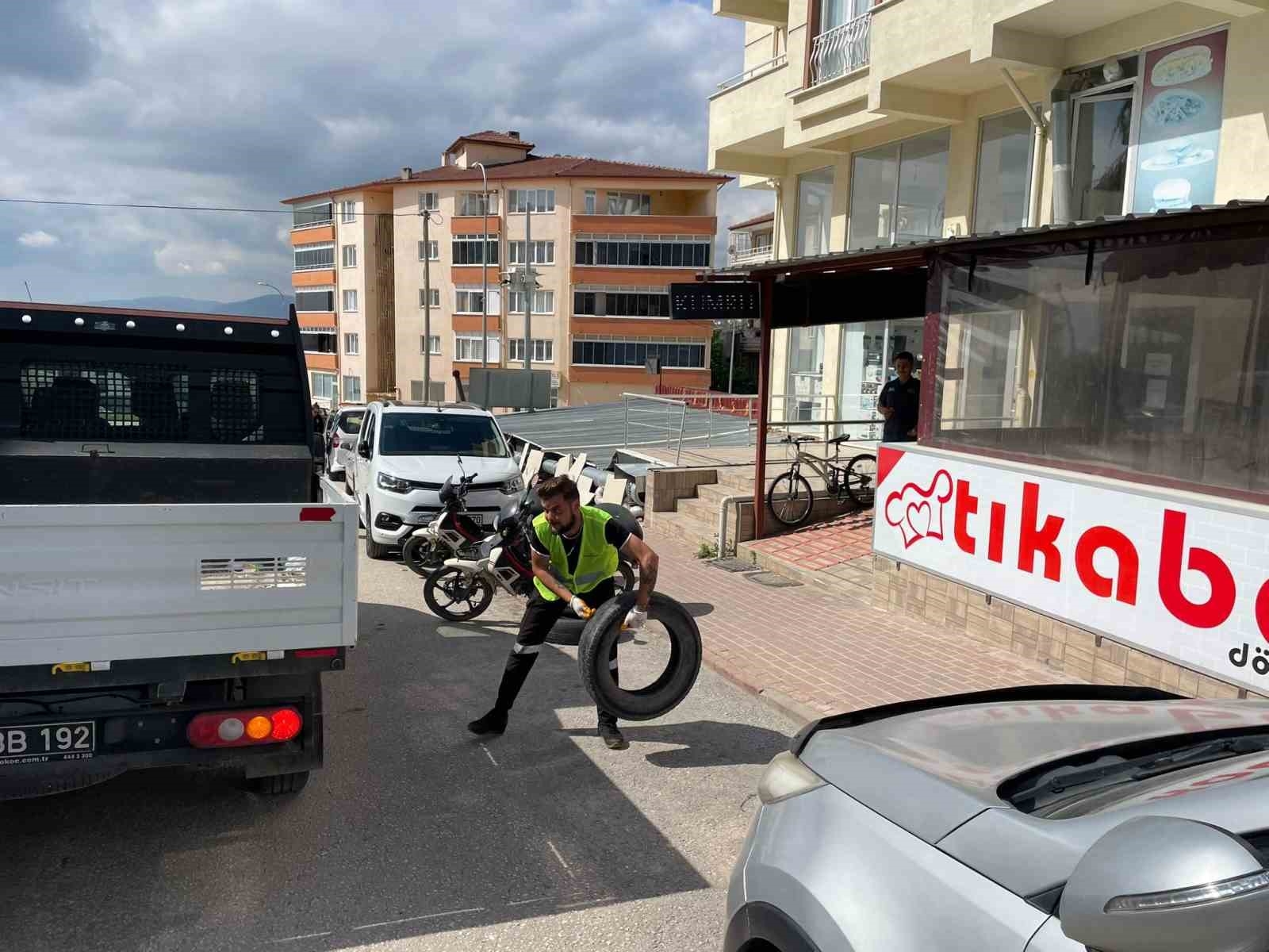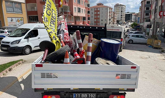 Bilecik'te yol ve kaldırımlarda yayaların güvenliğini tehdit eden ve görüntü kirliliğini ortadan kaldırmak amacıyla yapılan çalışmada birçok duba, levha ve yelken bayraklar toplandı.