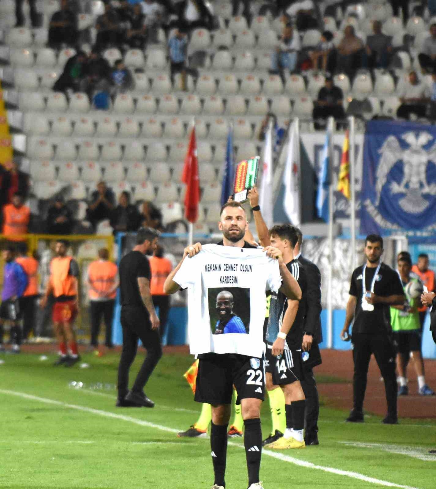 Yeni Malatyaspor karşısında golünü atan kaptan Mustafa Yumlu, "Mekanın Cennet Olsun Kardeşim" tişörtünü gösterdi.